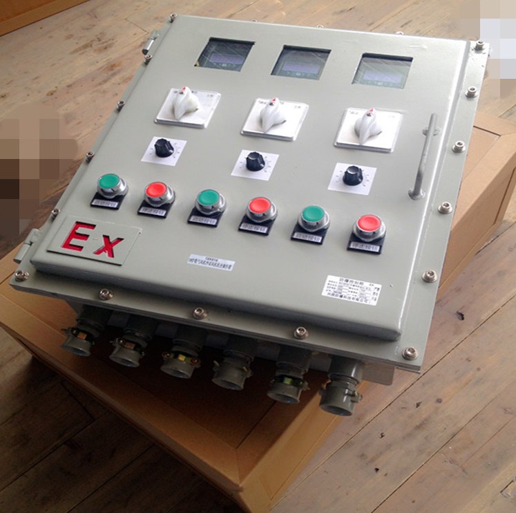 防爆控制箱一般有復合型和隔爆型兩種結(jié)構(gòu)。復合型外殼采用增安型結(jié)構(gòu),內(nèi)裝元件采用隔爆型元件或增安型的元件;外殼采用ZL102鋁合金壓鑄成型,表面高壓靜電噴塑,內(nèi)裝的元件有按鈕,控制開關(guān),儀表等均為防爆元件。